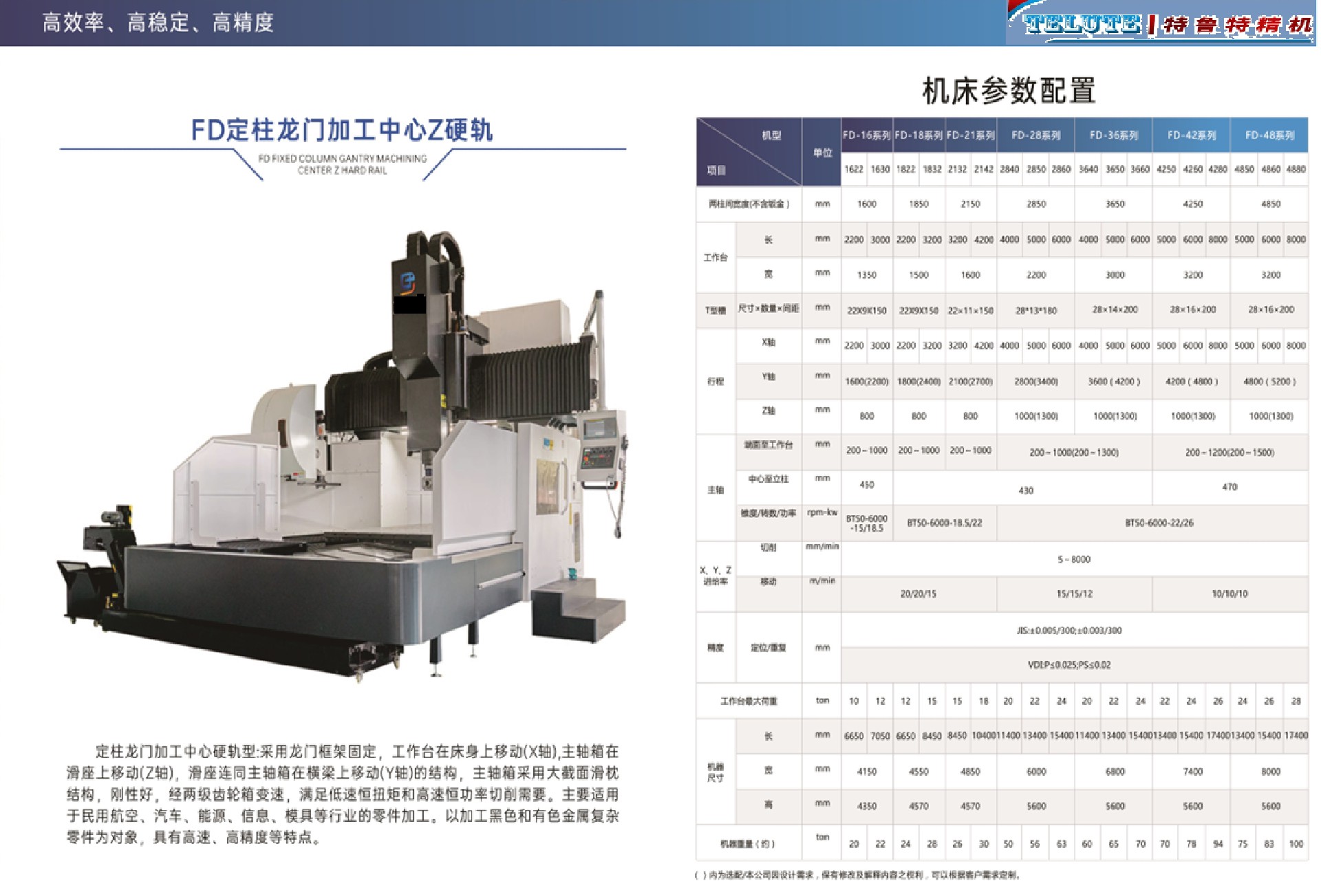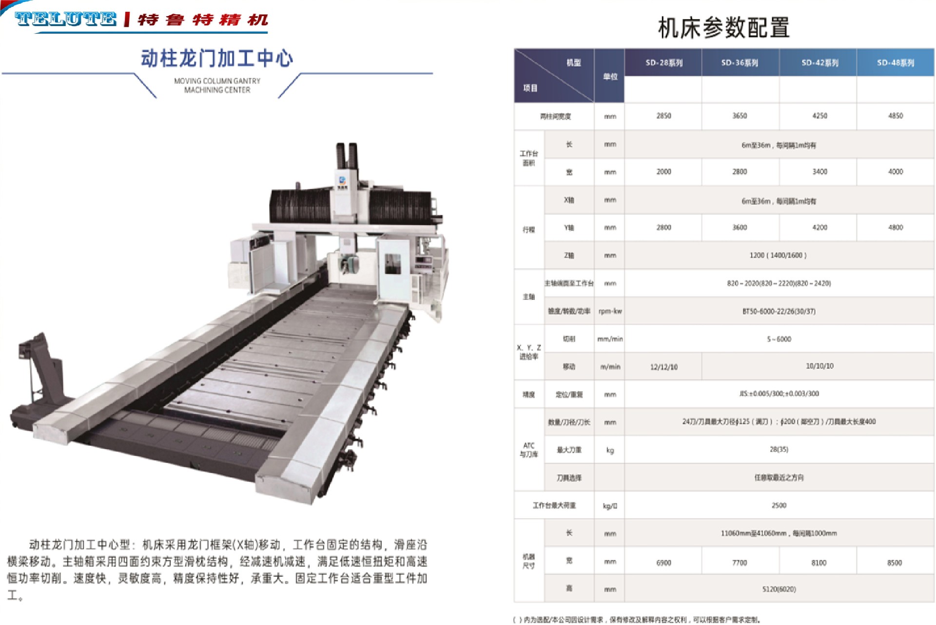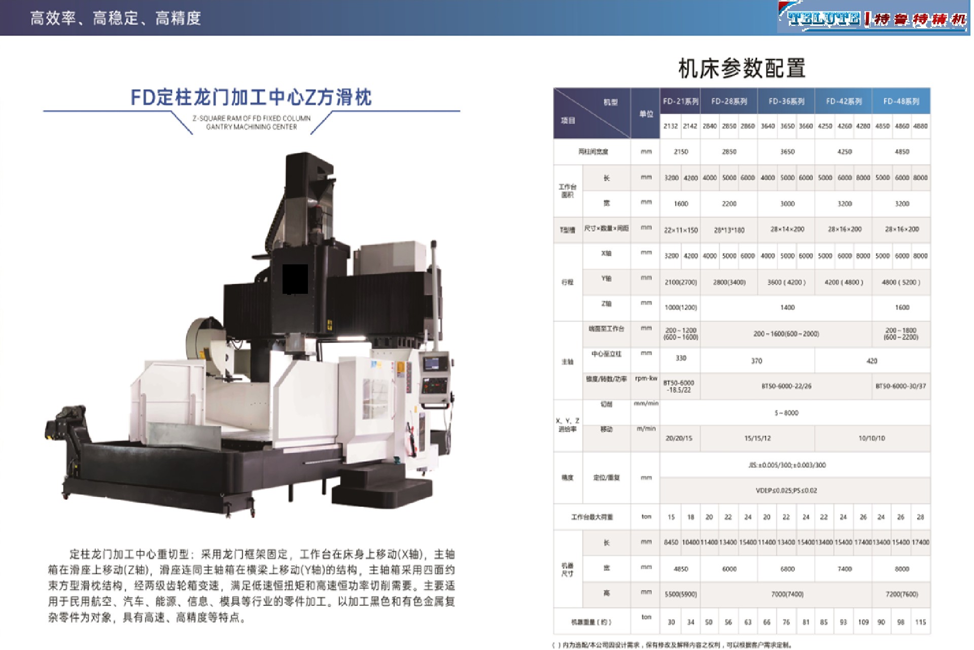 GMC定柱式龍門(Z軸硬軌)基本參數(shù)匯總